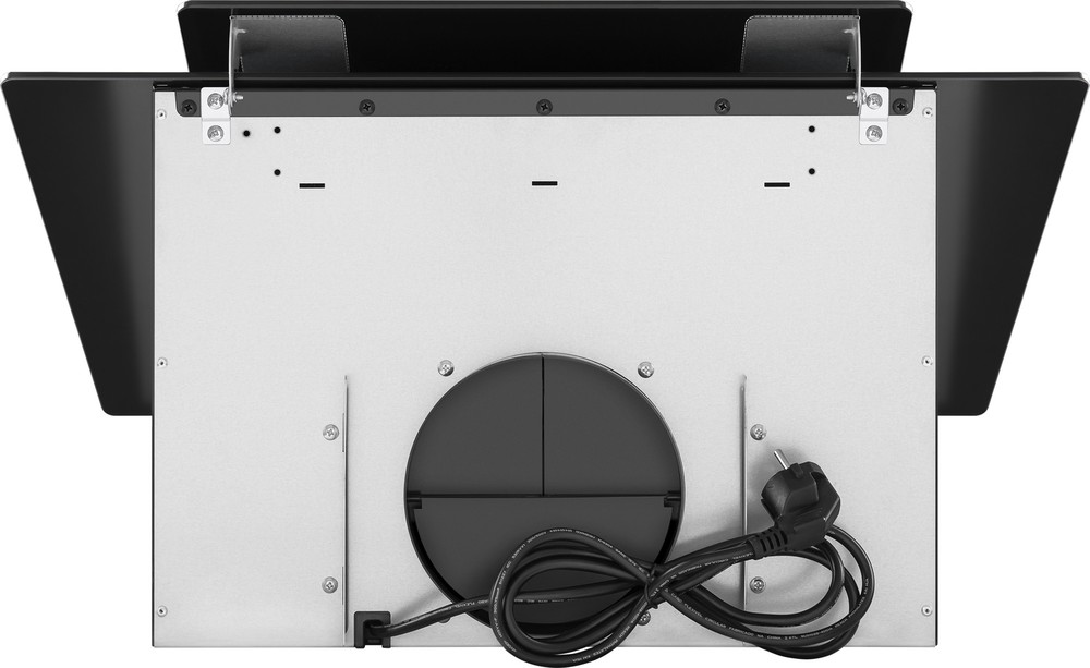 Наклонная вытяжка шириной 50 см . Корпус сделан из эмалированной стали, фасад выполнен из закаленного стекла со стеклянной крышкой. Сенсорное управление с дисплеем для выбора режима работы и установки таймера.