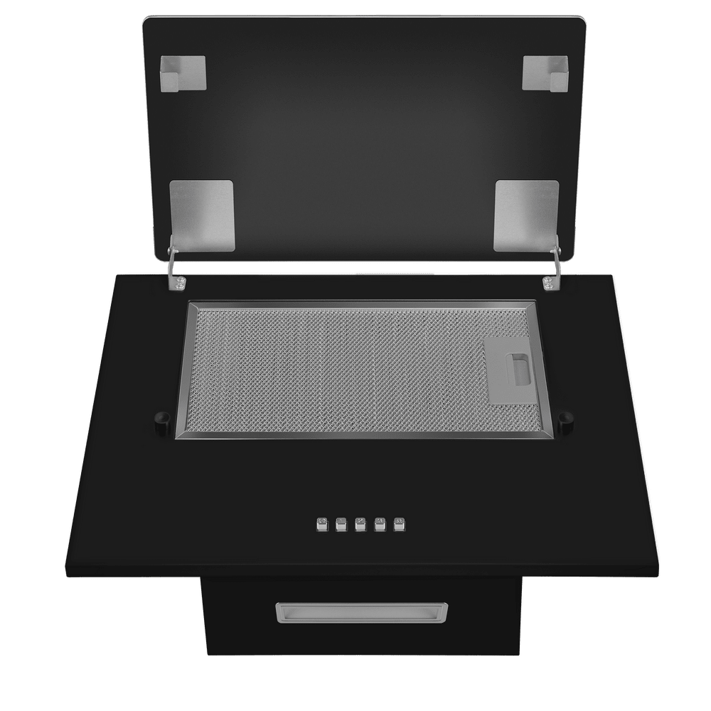 Наклонная вытяжка шириной 60 см . Корпус сделан из эмалированной стали, фасад выполнен из металла с крышкой из закаленного стекла.