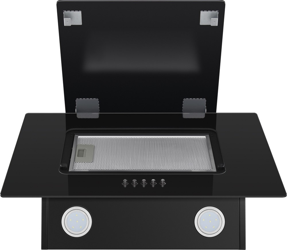Элегантная наклонная вытяжка шириной 60 см прекрасно подойдет для большой кухни. Корпус сделан из эмалированной стали, фасад выполнен из закаленного стекла со стеклянной крышкой._x000D_