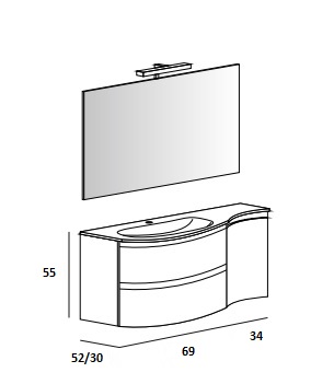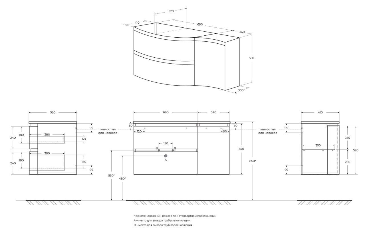 Мебель для ванной чаша слева Cezares VAGUE 104 Antacite 44221+44223