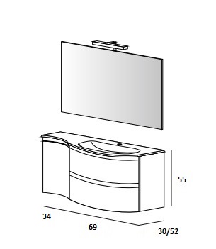 Мебель для ванной чаша справа Cezares VAGUE 104 Rovere sbiancato 54847+54849