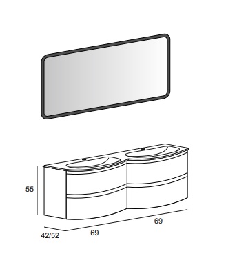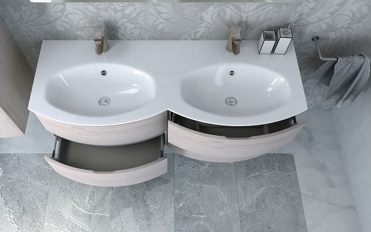 Мебель для ванной раковина с двумя чашами Cezares VAGUE 138 Rovere sbiancato