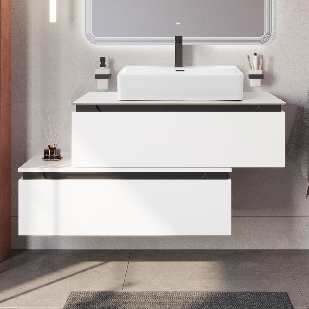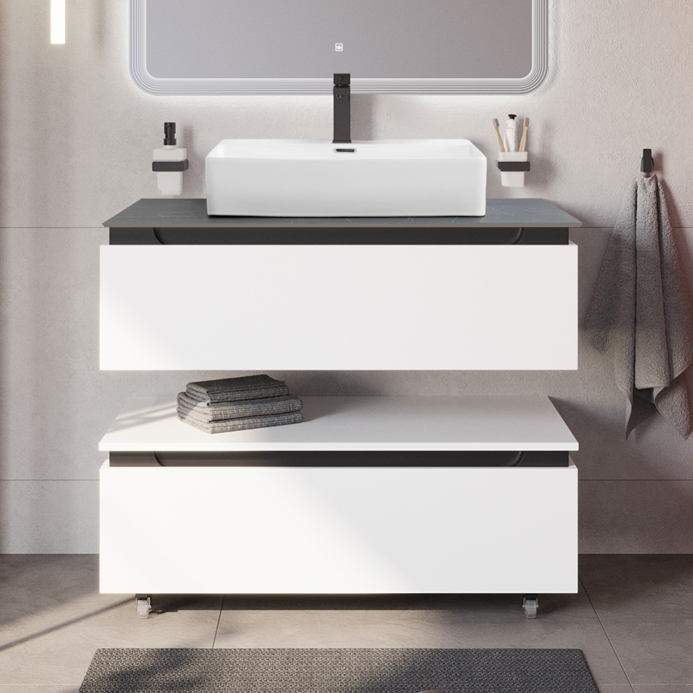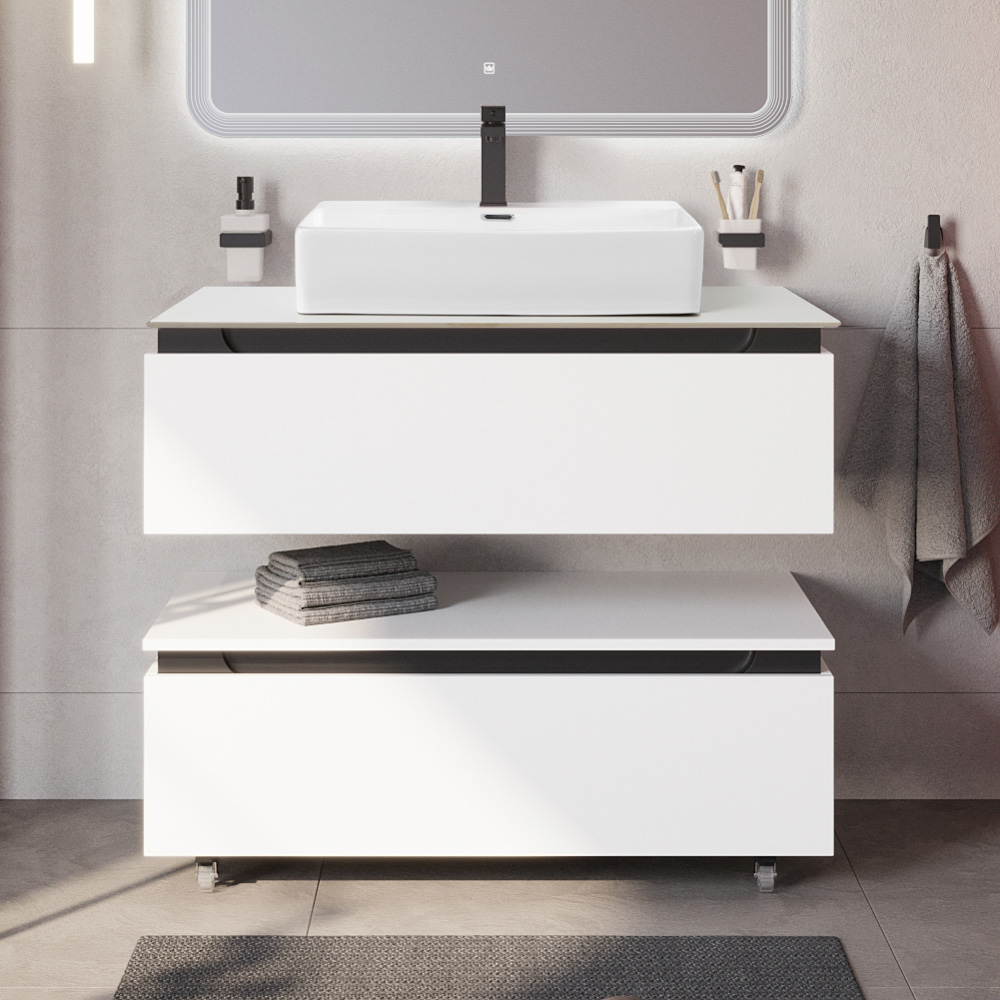Мебель для ванной со столешницей и накладной раковиной Cezares SLIDER 100 Bianco Opaco SLIDER-1000-1C-SO-BO