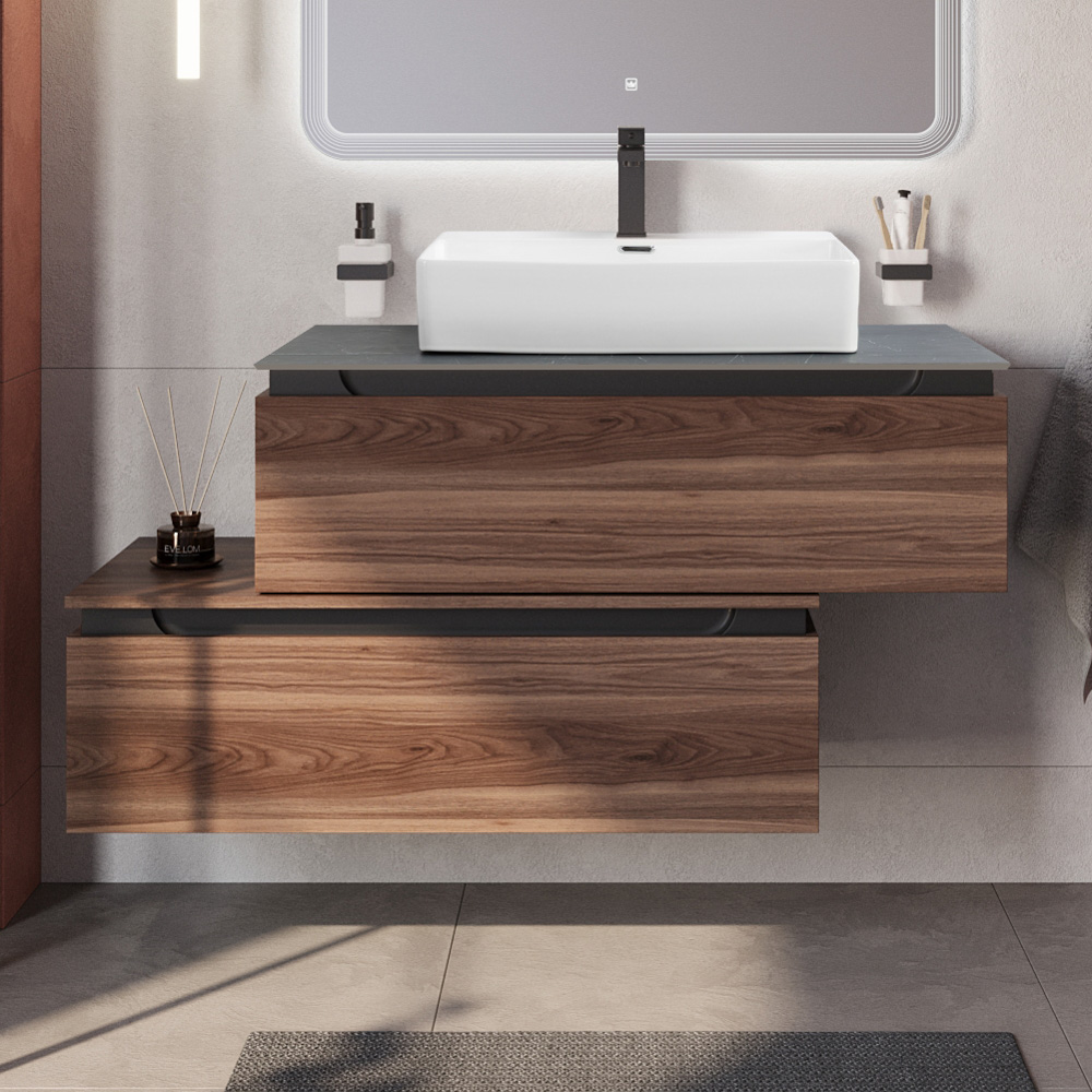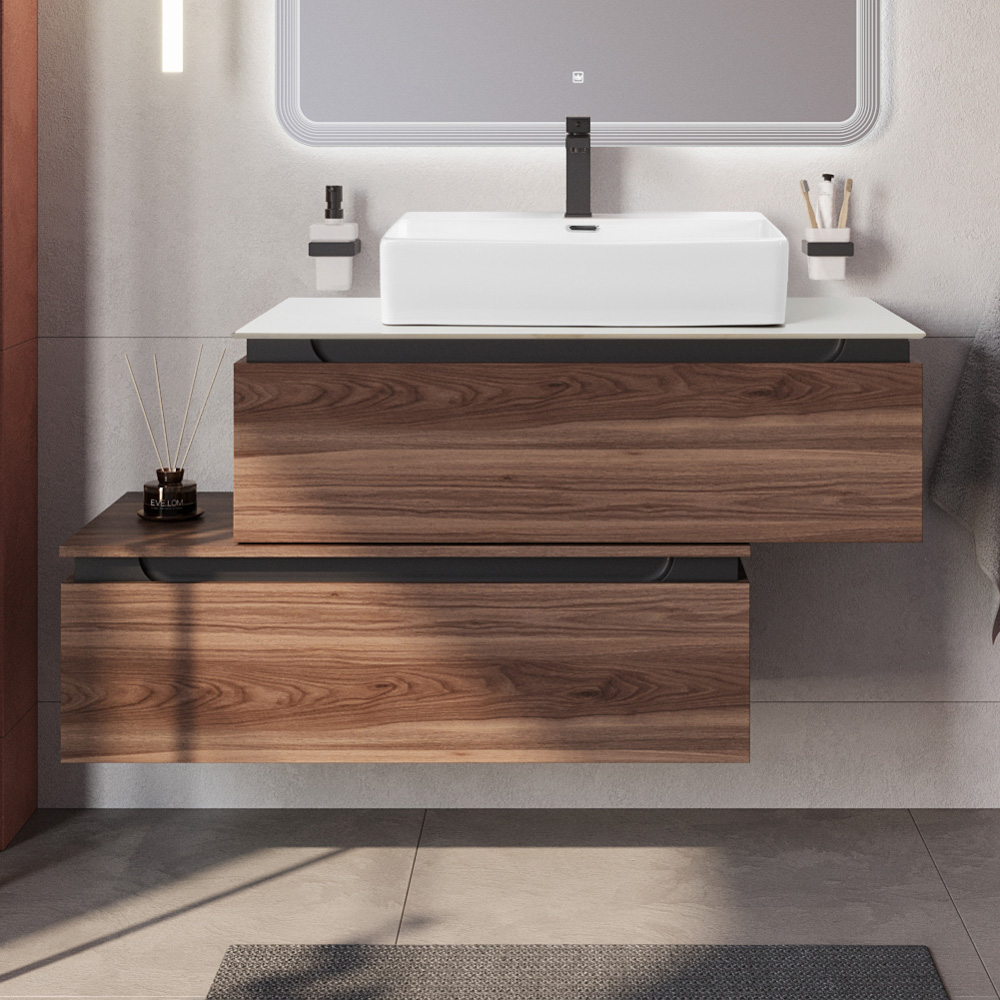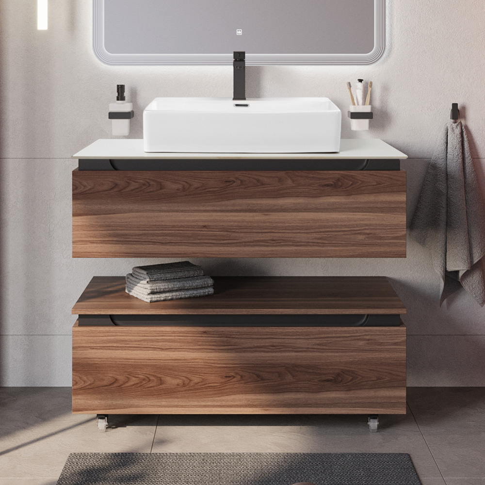 Мебель для ванной со столешницей и накладной раковиной Cezares SLIDER 100 Орех дымчатый SLIDER-1000-1C-SO-NA-P
