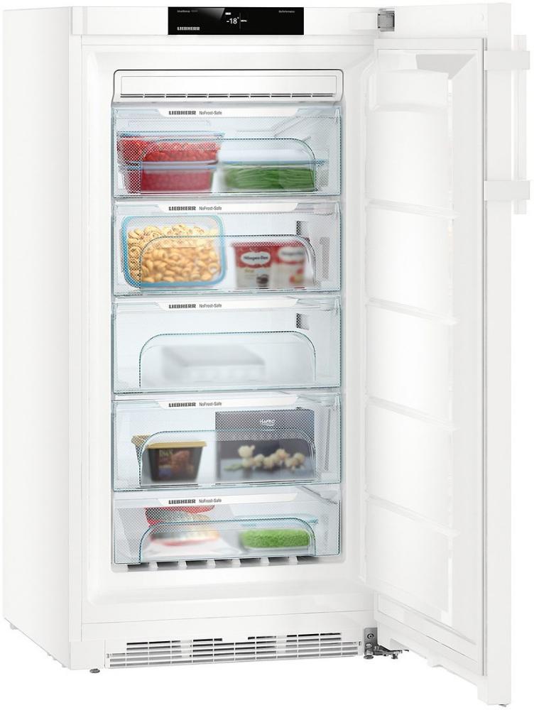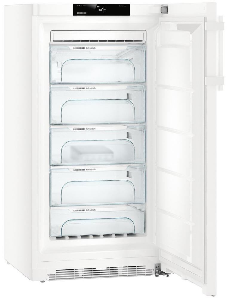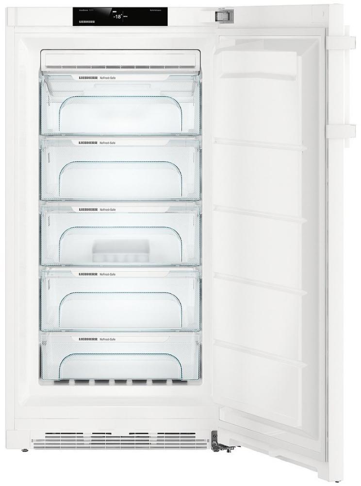 Морозильная камера Либхер GN 3835 Comfort NoFrost имеет такую систему охлаждения, при которой вся влага отводится наружу и оседает на специальном испарителе, а не в виде льда и инея на стенках. Благодаря этому внутри не образуются ледяные наросты, которые не только занимают место, но и увеличивают потребление электричества. Поэтому проводить частые разморозки не потребуется. Дополнительную защиту от обледенения обеспечивают контейнеры FrostSafe, созданные из морозостойкого пластика со специальным покрытием.