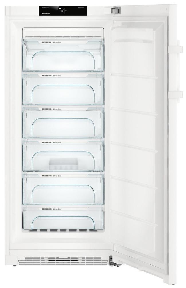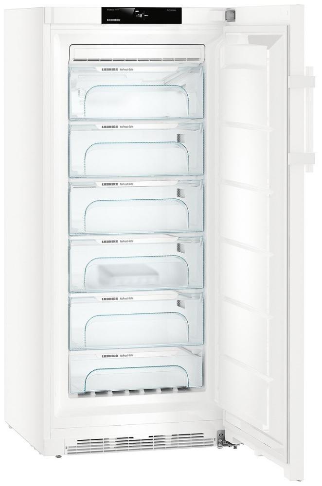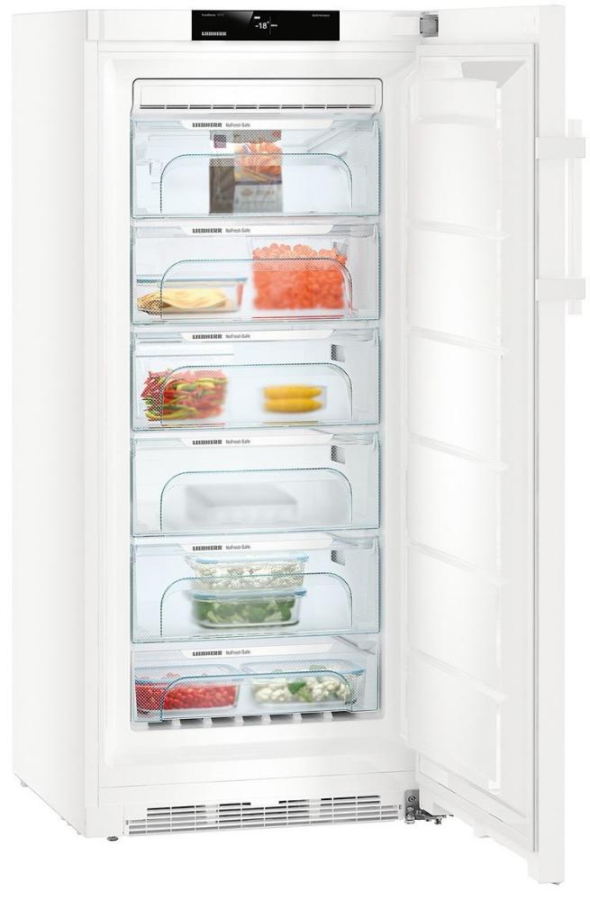 Морозильная камера Либхер GN 4135 Comfort NoFrost имеет систему охлаждения, при которой конденсат выводится за ее пределы и не оседает на стенках в виде льда и инея. Поэтому нет необходимости проводить частые разморозки: ледяные «шубы» и «айсберги» не помешают вам хранить продукты. Термостойкие контейнеры FrostSafe помогают упорядочить пространство внутри, минимизировать контакт уже хранящихся вещей с теплым воздухом при загрузке новых, а также благодаря специальному покрытию препятствуют их смерзанию друг с другом.