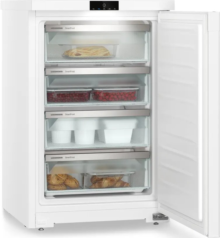 Морозильник-шкаф Liebherr FE 1414 — это сочетание элегантного дизайна и высоких технологий, обеспечивающих надежное хранение продуктов. Выполненный в классическом белом цвете, он гармонично впишется в любой интерьер. Корпус и дверь из стали подчеркивают его прочность и долговечность. Устройство оснащено сенсорной панелью управления, расположенной над дверью, что обеспечивает удобный доступ к настройкам. Светодиодное освещение внутри камеры позволяет легко находить нужные продукты даже при низкой освещенности в помещении.