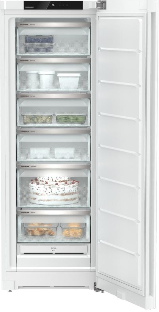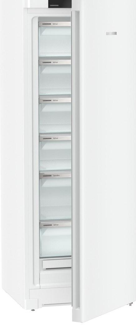 Морозильная камера Liebherr FNf 5006 выполнена в белом цвете. Благодаря системе NoFrost размораживание устроено таким образом, что весь конденсат из внутренней камеры выводится за ее пределы. Функция BottleTimer быстро и эффективно охлаждает бутилированные напитки.