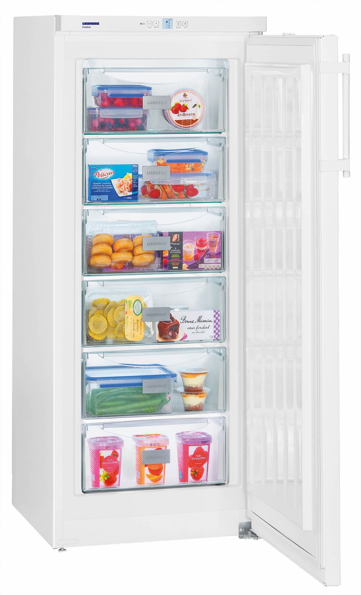 Морозильник Liebherr GP 2433 Comfort — это практичная и удобная однокамерная отдельностоящая модель, выполненная в дизайне SwingLine. Ему присущи строгие прямые линии и геометричность форм, ручка со встроенным толкателем облегчает управление, а благодаря перенавешиваемой двери можно выбирать любое место установки. При этом система InteriorFit позволяет ставить его непосредственно к стене, без зазора, а благодаря технологии FrostProtect его можно размещать в неотапливаемых помещениях, поскольку он выдерживает температуру до −15°C.