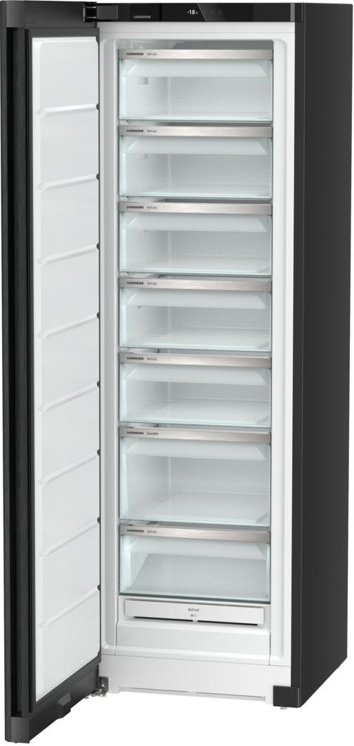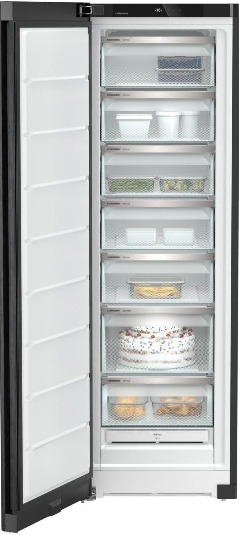 Морозильник Liebherr SFNbde 5227 — стильная и практичная модель, выполненная в глубоком черном цвете. Несмотря на то, что обычно на таких поверхностях хорошо заметны отпечатки пальцев, в этом случае их защищает специальное покрытие SmartSteel, благодаря которому вы можете забыть об этом. Система InteriorFit обеспечивает возможность установки вплотную к стене, что позволяет экономить пространство и расширяет доступные варианты месторасположения. Еще больше их расширяет технология FrostProtect, благодаря которой прибор может работать при температуре снаружи до −15°C, а значит его можно поставить в теплом гараже или на балконе.