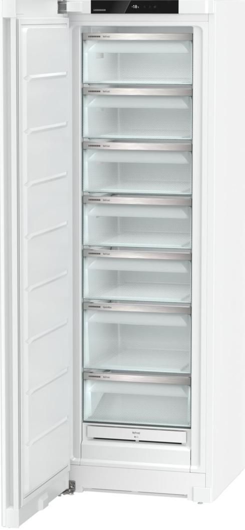 Морозильник Liebherr SFNe 5227— это модель из класса Pure, которая сочетает в себе современный элегантный дизайн и продвинутую функциональность. Основным цветом был выбран универсальный белый оттенок. Панель управления расположена над камерой и относится к типу Touch display, благодаря чему можно всего за несколько касаний изменять температуру и активировать встроенные режимы. Устройство оснащено системой EasyOpen и скрытой ручкой дверцы, что повышает комфорт использования. Его также можно установить вплотную к стенам благодаря конструкции InteriorFit.