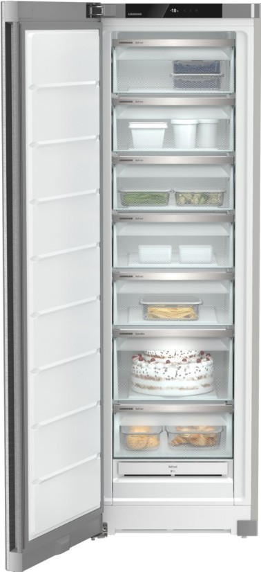 Отдельностоящий морозильник Liebherr SFnsdD 5227 — превосходное решение для тех, кто ценит надежность, функциональность и стиль. Произведенный в Германии, этот морозильник сочетает в себе высокое качество, продуманный дизайн и передовые технологии. Внешний вид морозильника привлекает внимание: строгие линии, серебристый цвет корпуса и двери из стали придают ему современный и элегантный вид. Компактные габариты (185.5×59.7×67.5 см) позволяют установить его даже в небольшой кухне, а специальная обработка SmartSteel защищает поверхность от отпечатков пальцев, сохраняя его внешний вид всегда идеальным. Морозильник оснащен электронной системой управления с жидкокристаллическим дисплеем и сенсорными элементами управления, расположенными за дверью.