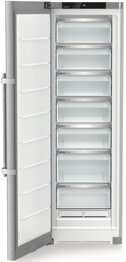 Морозильник Liebherr SFnsdD 5237 - это высококачественное устройство класса Prime (Premium). Корпус устройства выполнен из стали, а дверь - из нержавеющей стали, что обеспечивает его долговечность и устойчивость к коррозии. Кроме того, на двери есть обработка SmartSteel против отпечатков пальцев, что значительно упрощает уход за морозильником. Дверь оснащена доводчиком SoftSystem и ручкой с встроенным толкателем, что обеспечивает легкость и удобство ее открывания. Дверной упор расположен слева, но при необходимости двери можно перевесить. Управление морозильником осуществляется электронно с помощью сенсорных элементов управления и touch display, расположенных за дверью. Индикаторы на панели управления позволяют контролировать включение питания и температуру в морозильной камере.