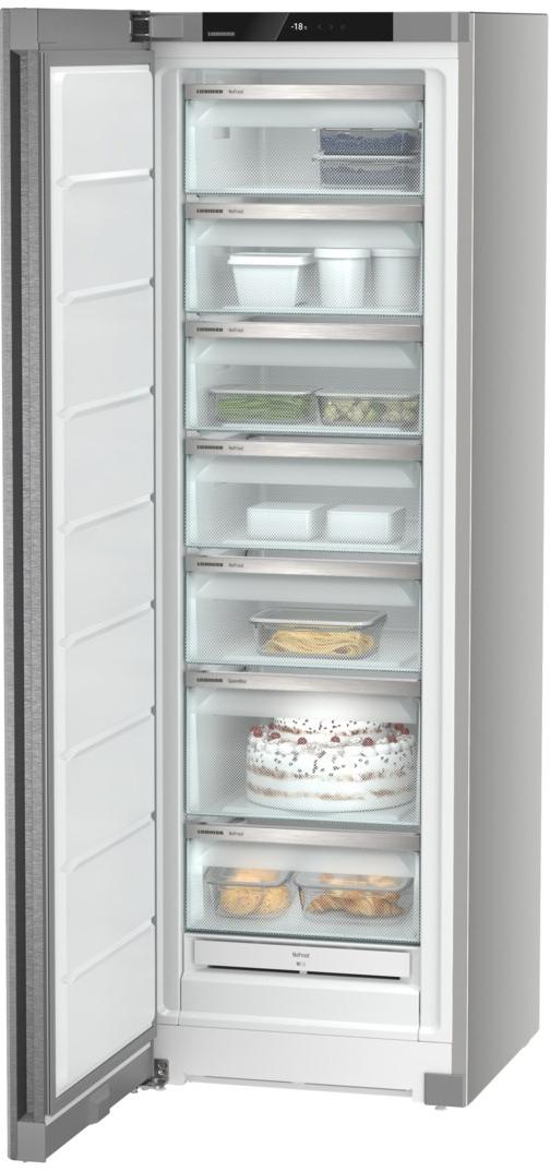 Морозильник Liebherr SFNsde 5227 Plus NoFrost является вместительной моделью высотой 185 см, которая относится к линейке премиум-класса BluPerfomance. Он оснащен регулируемыми ножками, что позволяет устанавливать его даже на неровную поверхность. Технология InteriorFit делает возможным монтаж вплотную к стене, без создания отступой. Корпус и дверцы выполнены из нержавеющей стали в темно-сером оттенке, дизайн минималистичен и особенно подойдет для современных интерьеров. Сенсорная панель управления TouchDisplay интуитивно понятна и проста в использовании.
