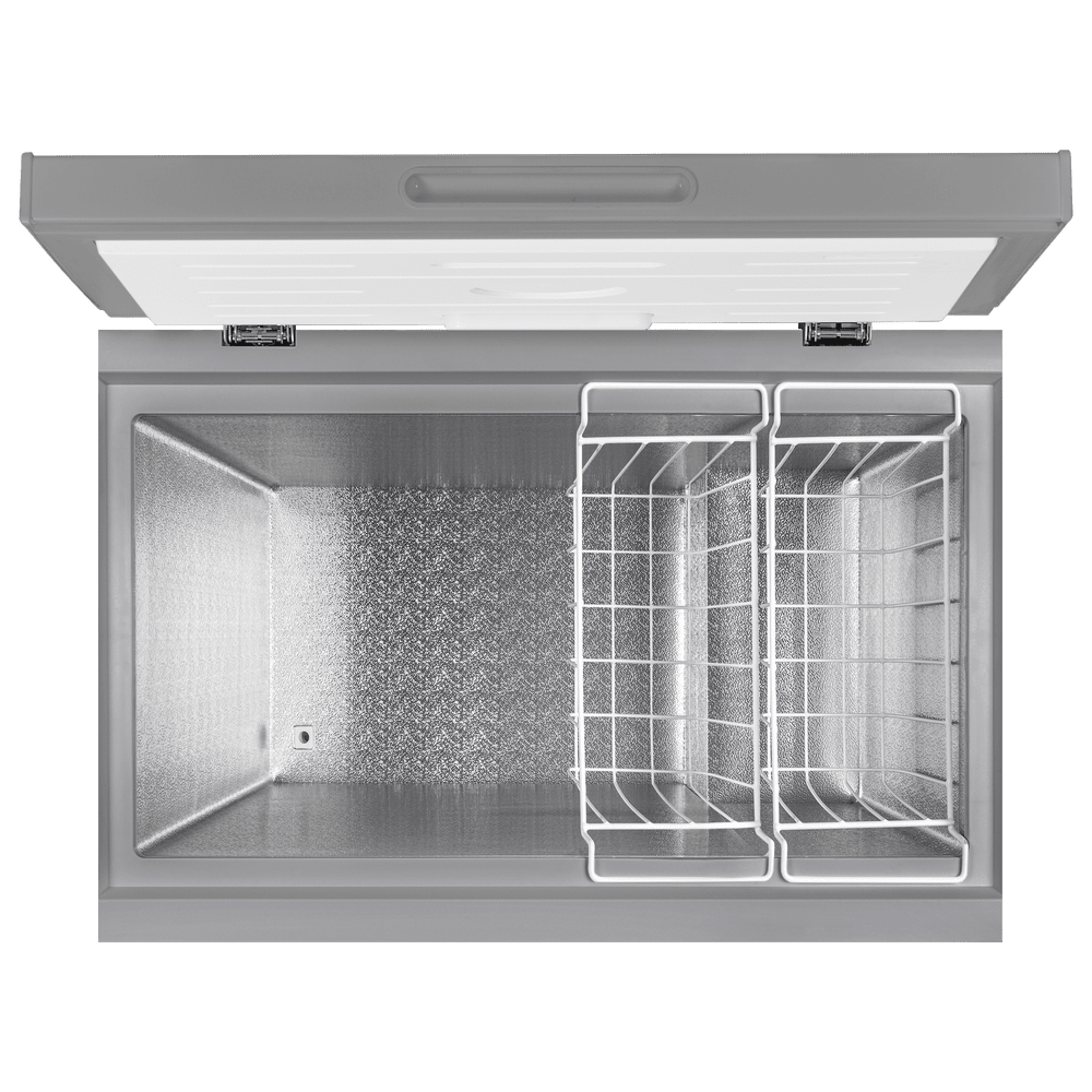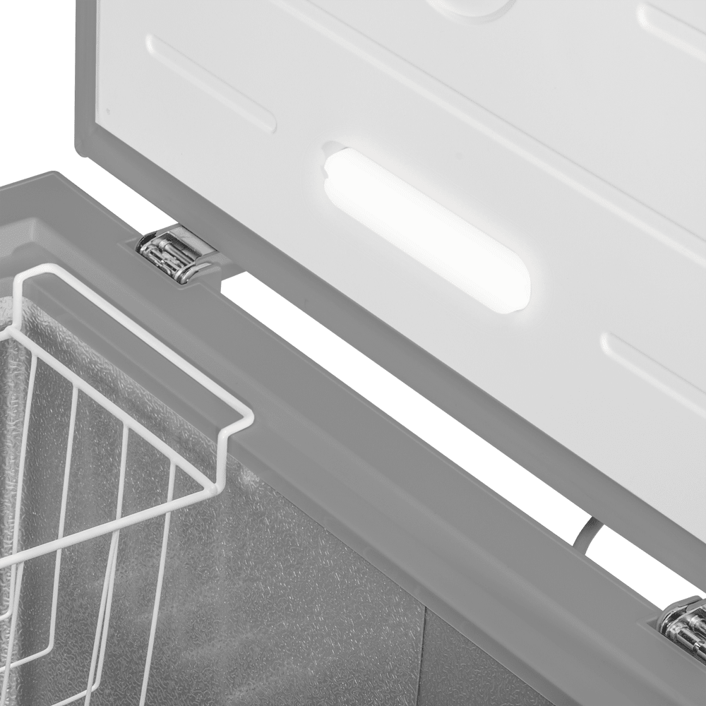 Морозильный ларь можно установить в помещении с температурой до -15°С. Благодаря специальному режиму можно быстро заморозить большое количество продуктов. Ларь оснащен двумя корзинами для быстрого доступа. LED подсветка на крышке освещает все пространство внутри.