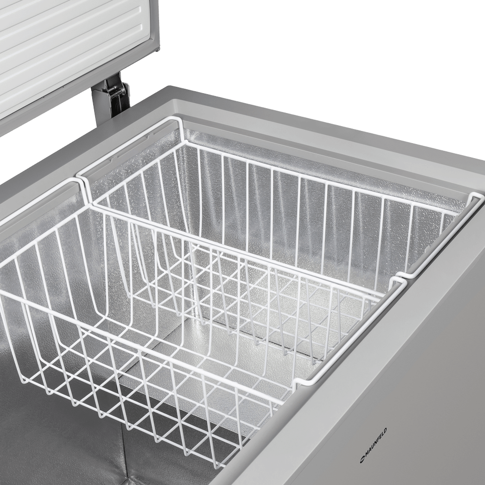 Морозильный ларь можно установить в помещении с температурой до -15°С. Благодаря специальному режиму можно быстро заморозить большое количество продуктов. Ларь оснащен двумя корзинами для быстрого доступа. LED подсветка на крышке освещает все пространство внутри.