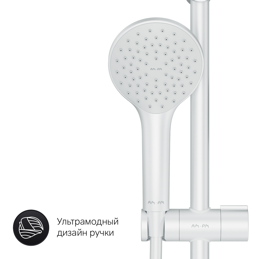 Набор Х-Joy - это готовое решение для ванной комнаты. 2 в 1: набор из смесителя и душевой системы гармонично дополняют друг друга как функционально так и эстетически. Смеситель оборудован специально спроектированным для AM.PM керамическим картриджем SoftMotion 35 мм который обеспечивает оптимальную регулировку температуры а также позволяет выдерживать любые перепады давления. Корпус смесителя X-Joy изготовлен по принципу цельного литья из латуни. Покрытие Everlast – вдвое превышает отраслевые стандарты по прочности и износостойкости. . Диаметр душевых леек (верхний душ 220 мм и ручной душ 110 мм) позволит ощутить преимущества тропического душа даже в стандартной ванной тогда как увеличенная длина шланга 1750 мм обеспечит свободу движений во время принятия душа. Продуманные детали для удобства использования: телескопическая поворотная штанга регулируется по высоте в диапазоне от 1030 до 1460 мм обеспечивая комфорт для людей любого роста. ""