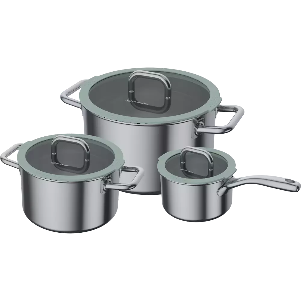 Набор посуды Kenrei — это идеальное решение для тех, кто стремится создать комфортную и функциональную кухню. Набор посуды выполнен из нержавеющей стали. Корпус состоит из пяти слоев: внутренние стенки и дно изготовлены из высокопрочной нержавеющей стали SUS304, а внешняя часть корпуса - из сохраняющей тепло нержавеющей стали SUS430. Данный вид стали является магнитным, что обеспечивает совместимость посуды с индукционными плитами. Посередине находится трехслойная прослойка из сплава с высокой теплопроводностью для быстрого нагрева посуды и равномерного прогревания.