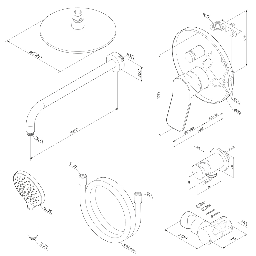 Смеситель 10 лет; верхний душ, держатель, душевой набор, шланговое присоединение 2 года