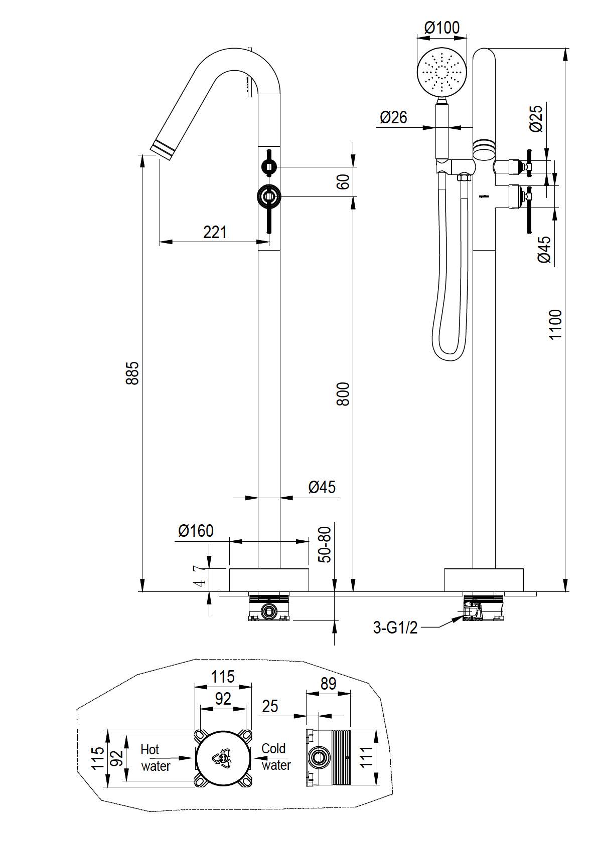 Напольный смеситель для ванны с душем Boheme Eterna 179-G GOLD