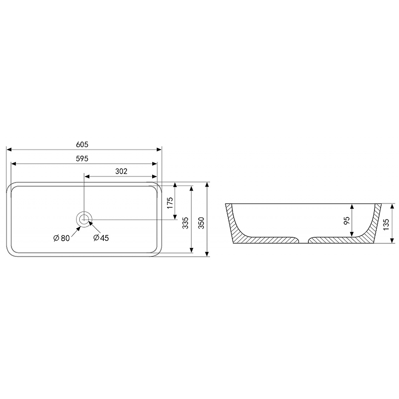 - Габариты (ШхВхГ): 605х135х350 мм.