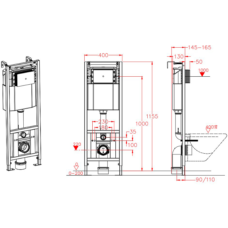 - Размеры (ШхВxГ): 400х1155-1355х145-165 мм.