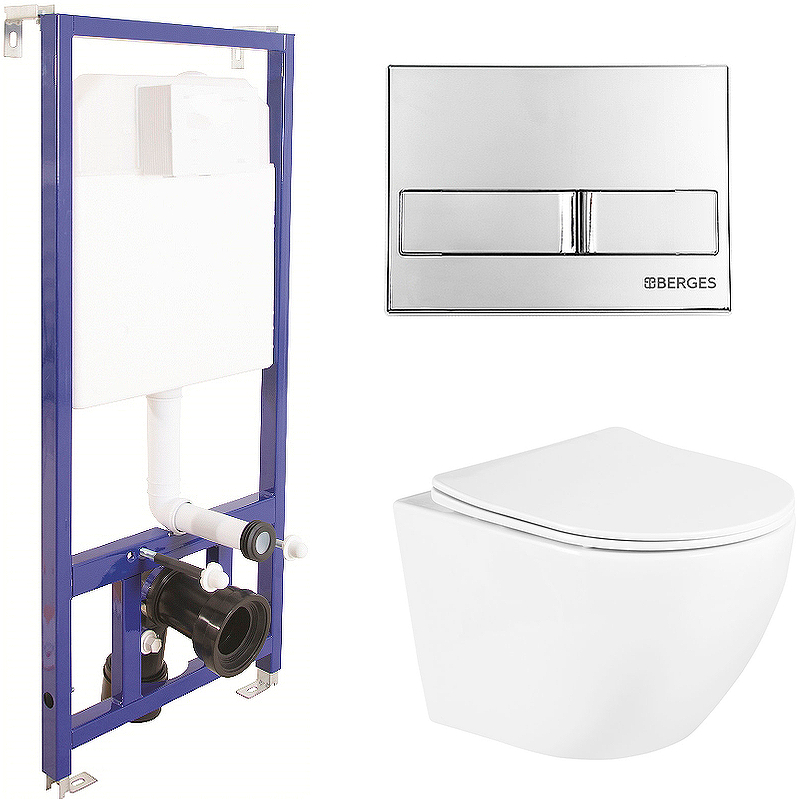 Комплект унитаза BelBagno Uno BB3105CHR/SC с инсталляцией Berges Novum L3 040213 со смывным бачком, с сиденьем Микролифт и клавишей смыва Хром.