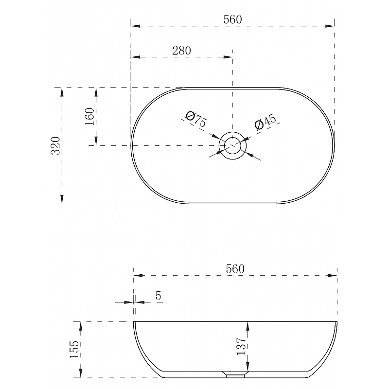 - Размеры (ШхВхГ): 560х155х320 мм.