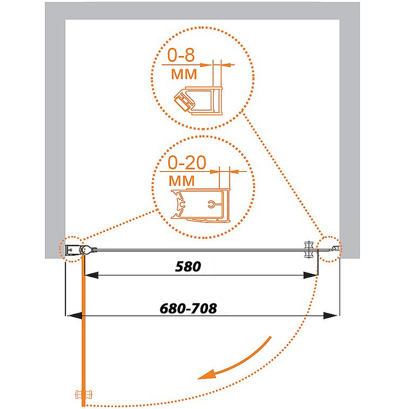 - Регулировка ширины предусмотрена за счет боковых профилей.
