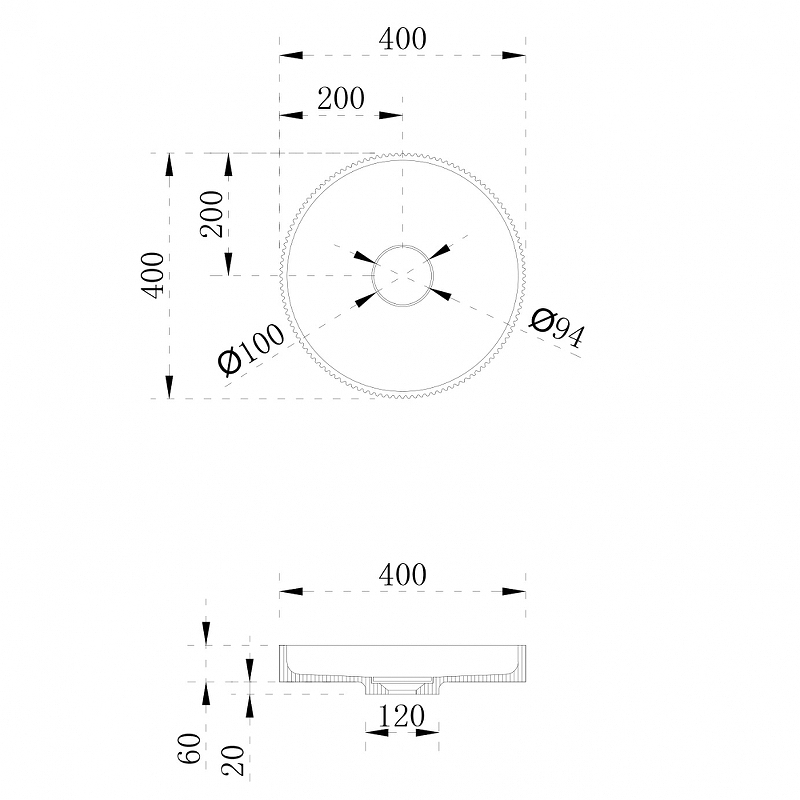 - Размеры (ШхВхГ): 400х60х400 мм.