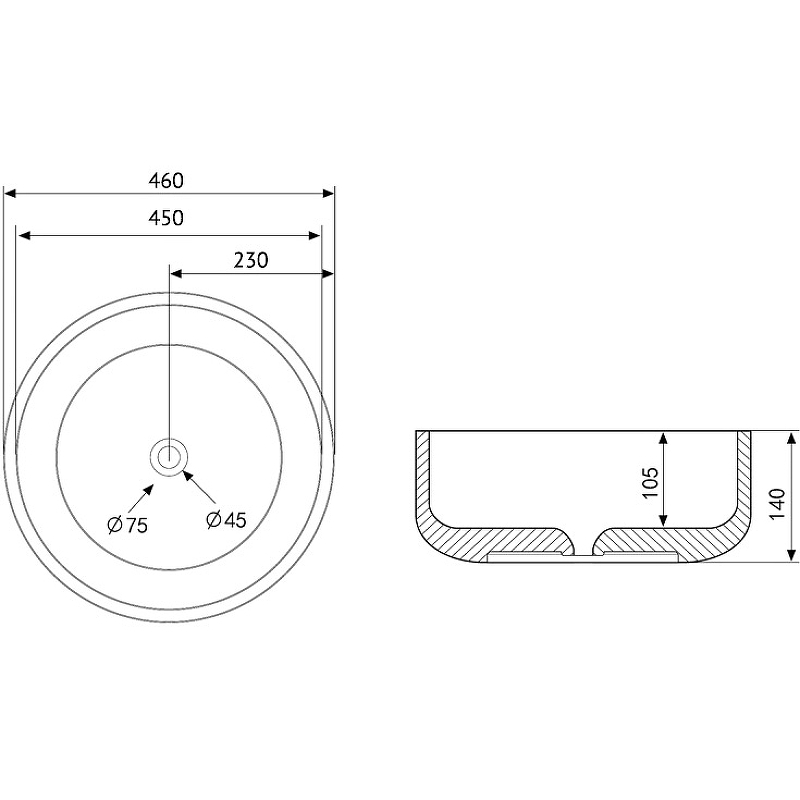 - Габариты (ШхВхГ): 460 х 140 х 460 мм.