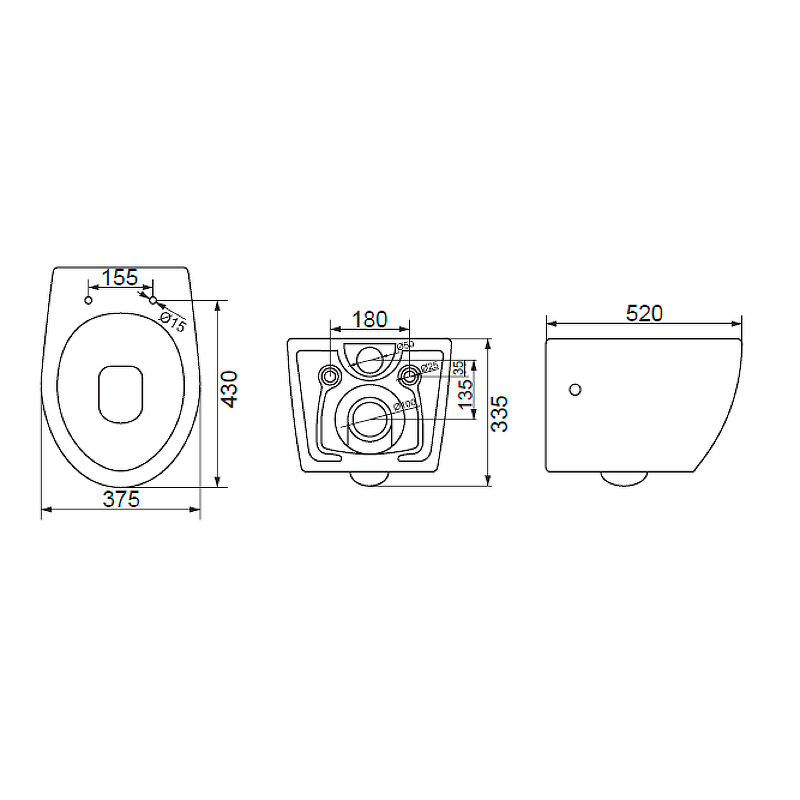 - Межосевое расстояние под крепежные шпильки (для подвесных унитазов): 180 мм.