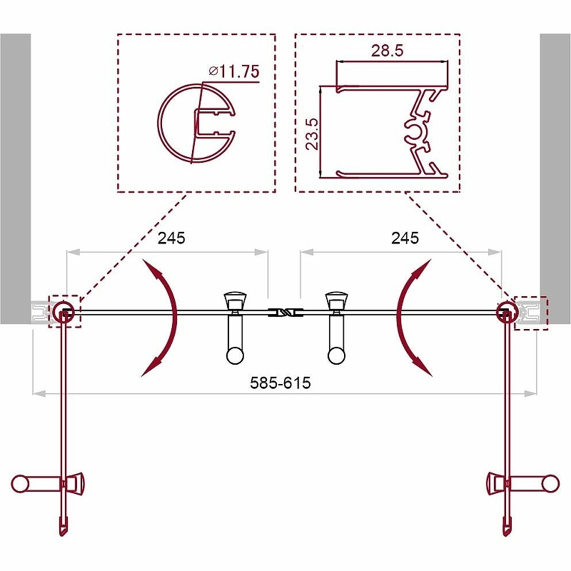 - Регулируемая ширина: 585-615 см.