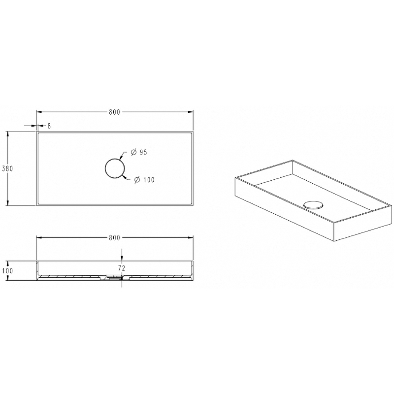 - Размеры (ШхВхГ): 800х100х380 мм.