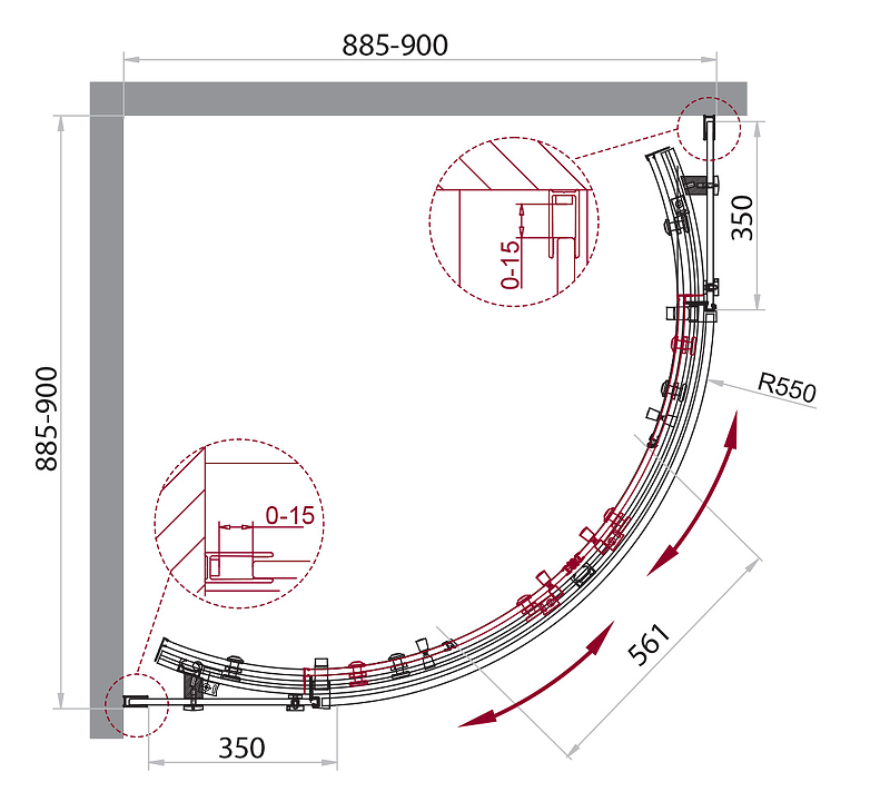 - Монтаж осуществляется либо на поддон, либо на пол, оборудованный для душа.