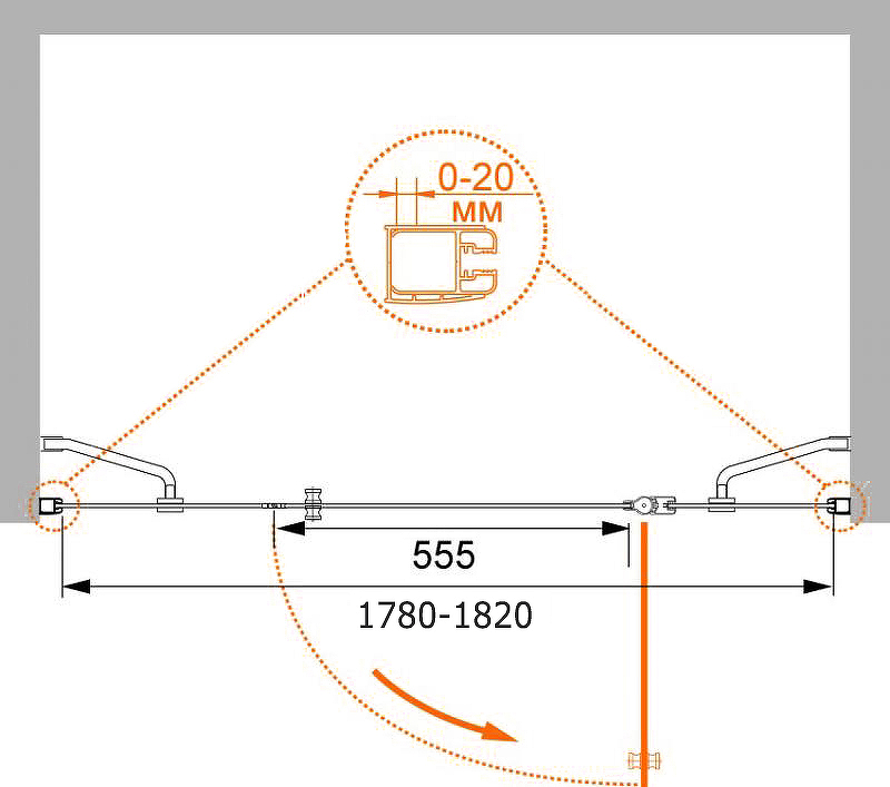 Душевая дверь в нишу Cezares Elena 180 R ELENA-W-B-13-60+60/60-P-Cr-R.