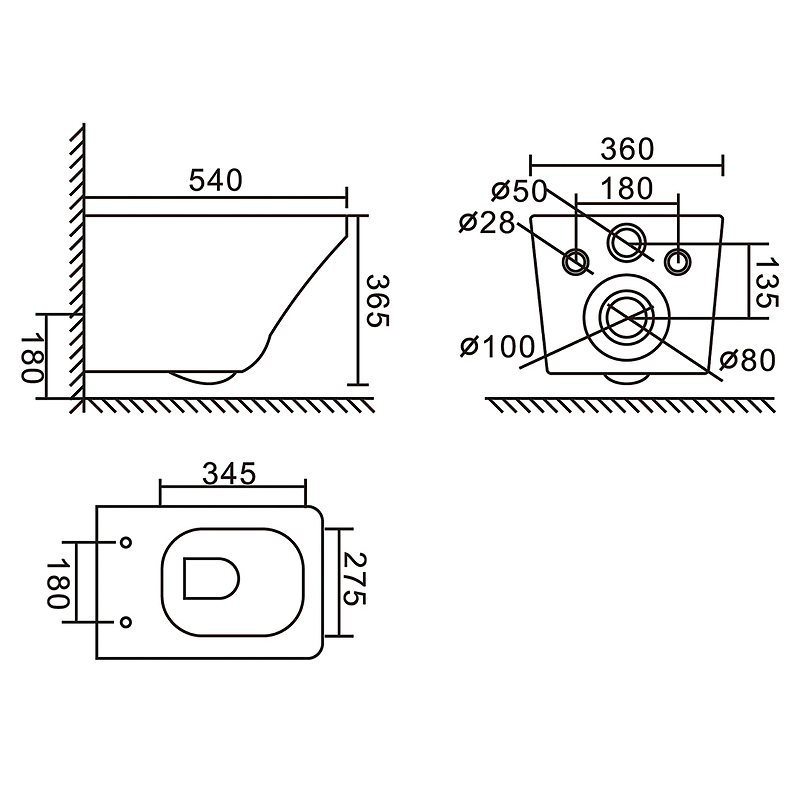 - Межосевое расстояние под крепежные шпильки (для подвесных унитазов): 180 мм.