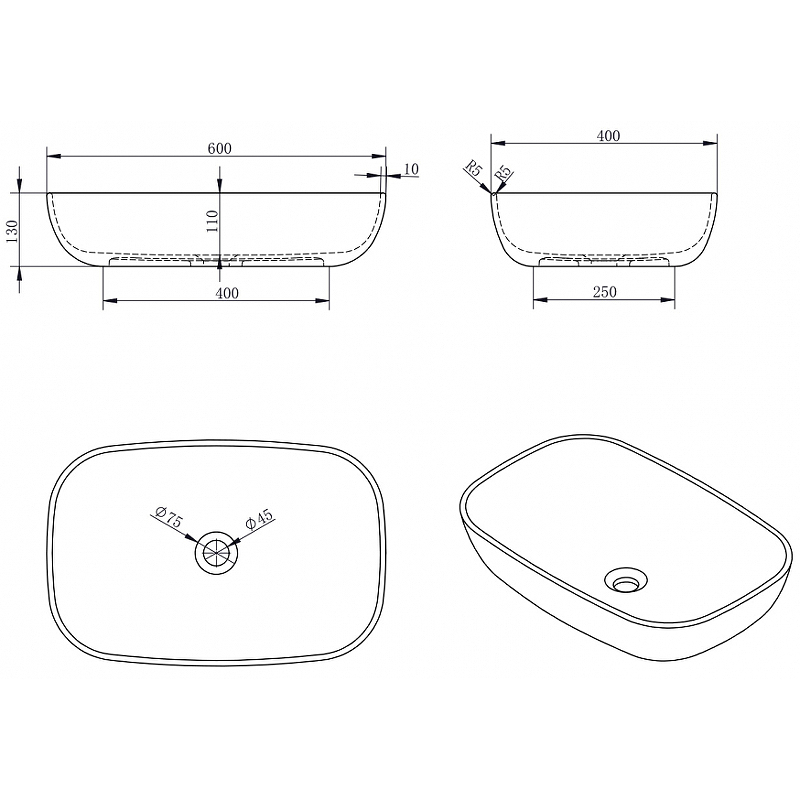 - Размеры (ШхВхГ): 600х130х400 мм.