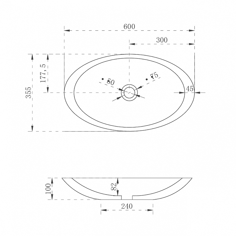 - Форма: овальная.