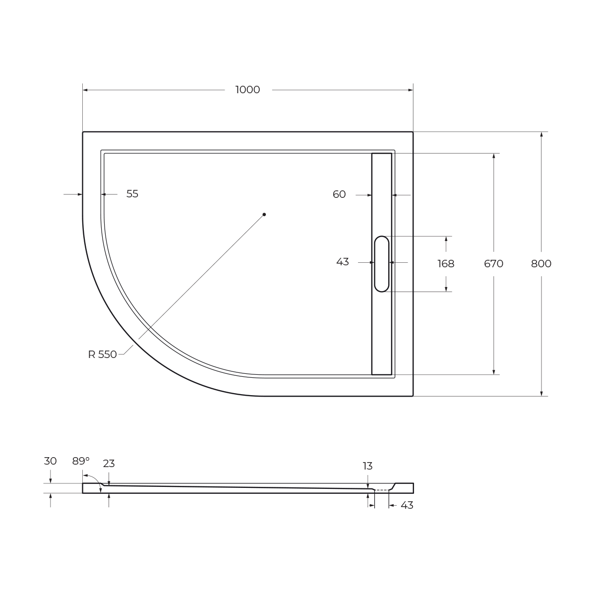 Он обеспечивает легкость и простоту ухода, а благодаря рельефной поверхности безопасность во время приёма душа, стойкость к царапинам и окрашивающим жидкостям, а при необходимости – идеальную ремонтопригодность. Высота поддона 30 мм позволяет установить поддон непосредственно на пол или вровень с полом.