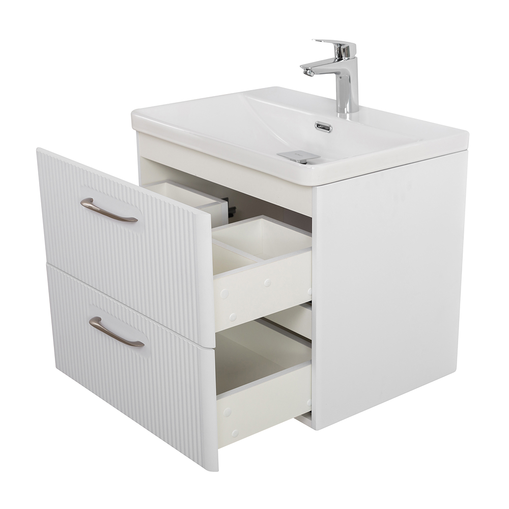 Подвесная тумба с раковиной Belbagno DUE 50 см Белый металлик DUE-500-2C-SO-BM-P + BB-8076-3-50