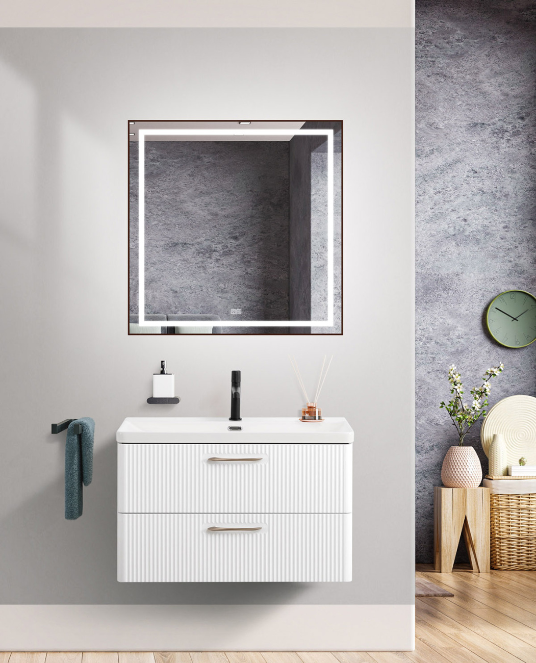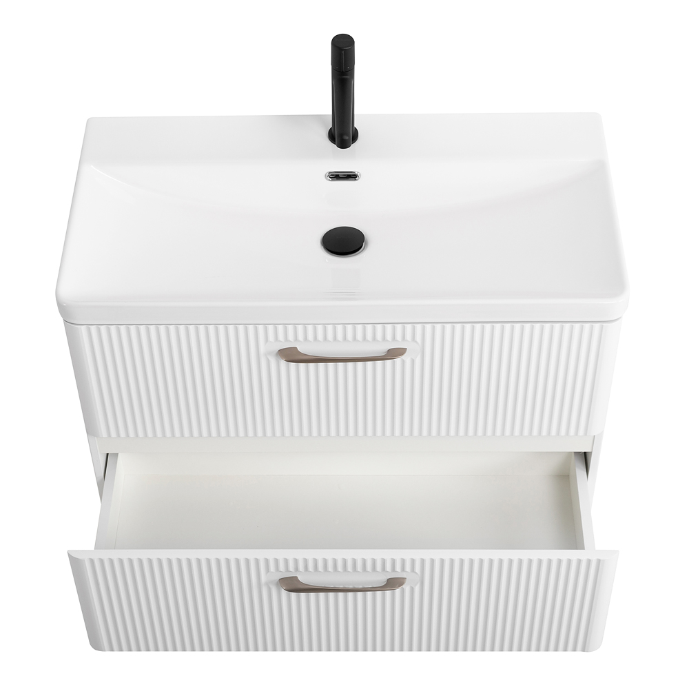 Подвесная тумба с раковиной Belbagno DUE, 80 см Bianco Lucido DUE-800-2C-SO-BL-P + BB-8076-3-80