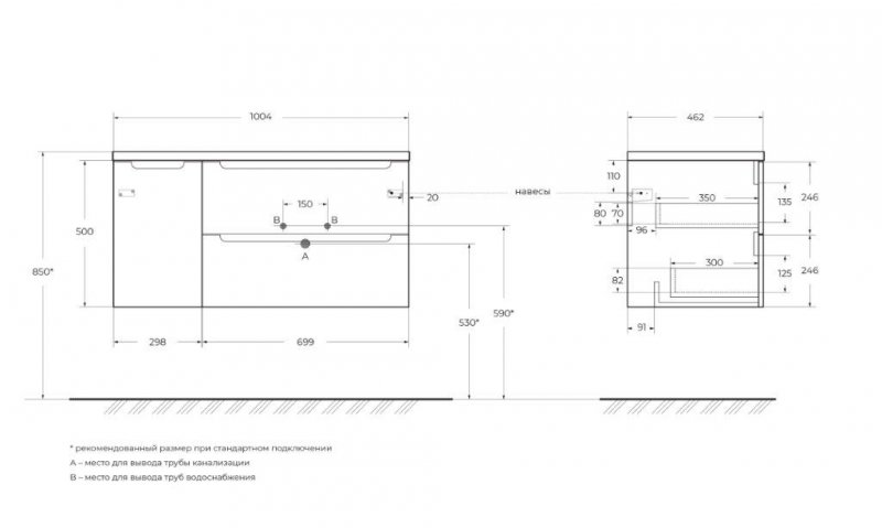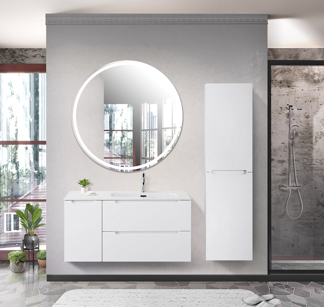 Подвесная тумба с раковиной BelBagno ETNA 100 Bianco Lucido правая, ETNA-1000-2C-1A-SO-BL-R + BB1000ETL-R