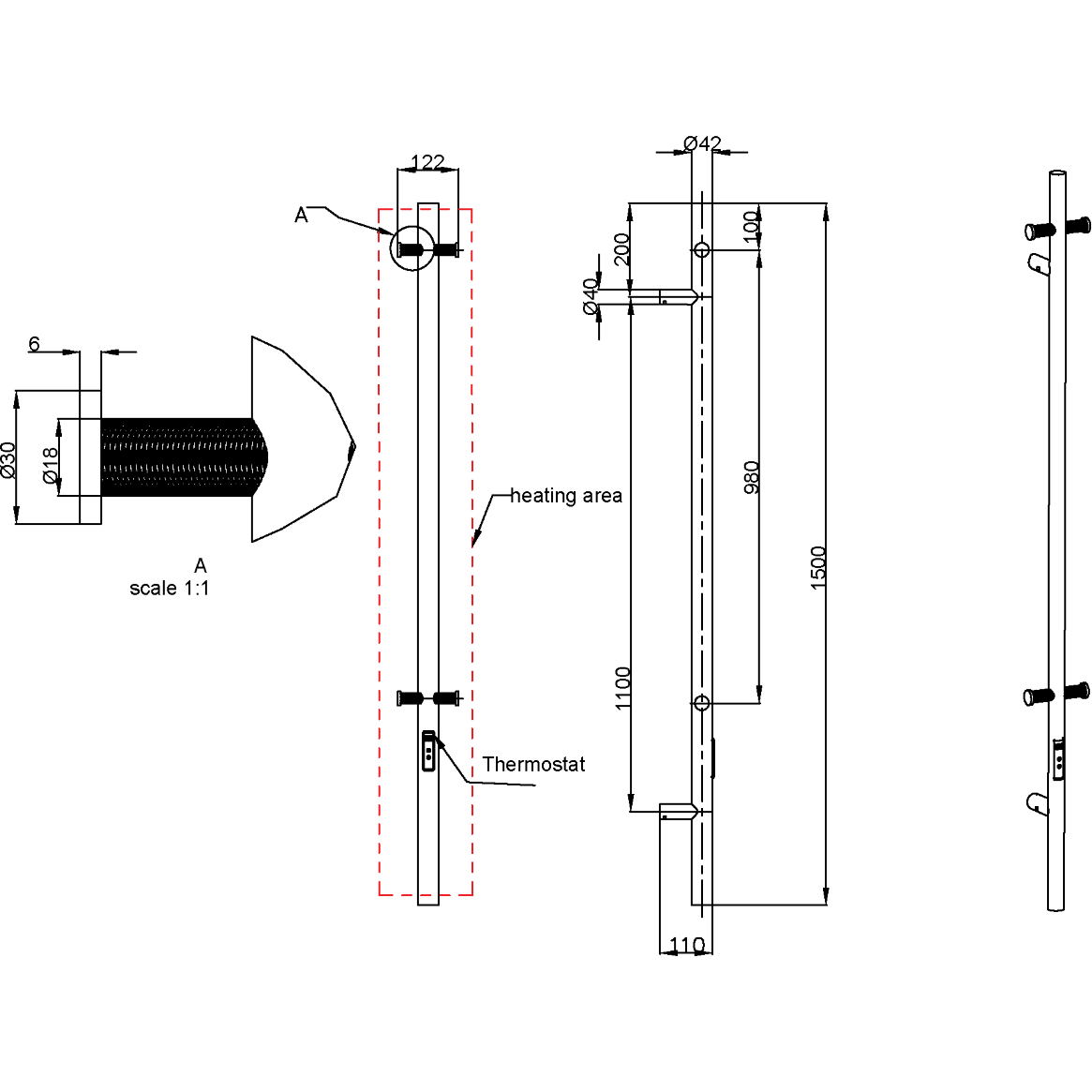 - Полотенцесушитель сухого типа с нагревательным кабелем
