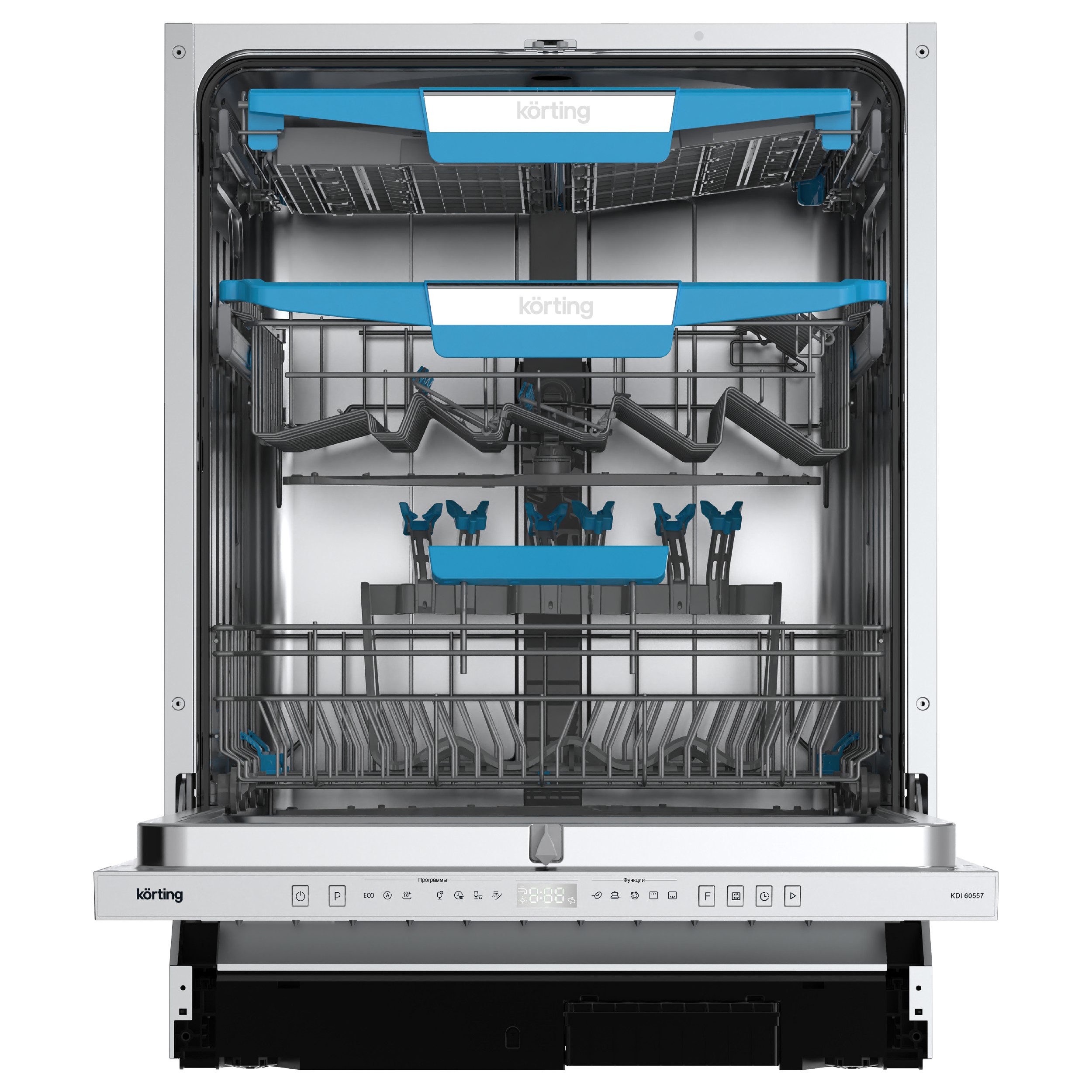 Посудомоечная машина KDI 60557 шириной 60 см — это современный встраиваемый бытовой прибор, вмещающий до 14 комплектов посуды. Модель оснащена тремя корзинами, включая специально предназначенную для столовых приборов корзину «C-Shelf», которая позволяет удобно размещать множество предметов, в том числе длинных — ножи и лопатки. Также машина оснащена держателем для безопасного мытья бокалов (до 6 штук). Прибор предлагает семь программ мойки, эффективно справляющихся с разными по сложности загрязнениями. Помимо одной из самых популярных — автопрограммы, при активации которой машина определяет степень загрязнения посуды, её количество и самостоятельно подбирает оптимальные параметры для мойки, — предусмотрен специальный режим «Гигиена», обеспечивающий дополнительную защиту от бактерий и микробов. Высокая температура и длительный процесс мытья позволяют эффективно устранять не только остатки пищи, но и потенциально опасные микроорганизмы. Идеально подходит для мытья детской посуды, кухонных аксессуаров, а также для людей с ослабленным иммунитетом. Инновационная форма разбрызгивателей «S-Form» обеспечивает равномерное распределение потоков воды по всей камере. Кроме того, в модели есть режим экстра-сушки, который значительно улучшает качество осушения посуды. Электронное управление прибором интуитивно понятно и позволяет легко выбирать нужный режим. Внутреннее LED-освещение камеры добавляет удобства и позволяет контролировать чистоту внутри машины. Функция «Луч на полу» проецирует световой индикатор на пол во время работы и отключается по завершении цикла мойки — это позволяет визуально определить, когда программа завершилась. Посудомоечная машина совместима с комбинированными моющими средствами в одной таблетке «All in 1». Для повышения удобства в повседневном использовании предусмотрена функция отложенного старта от 1 до 24 часов, а полную защиту от протечек обеспечивает система AquaControl. Модель имеет высокий класс энергопотребления А++ и уровень шума — 47 дБ. Современные функции, надежность и эффективность делают посудомоечную машину KDI 60557 отличным выбором для тех, кто ценит качество, надежность и комфорт в повседневной жизни. 7 программ мойки 7 программ - это оптимальный набор режимов для мойки с любым типом посуды. Система защиты от протечек «AquaStop» Специальная конструкция состоящая из двухслойного шланга и особого механизма, расположенного в месте подсоединения к точке водоснабжения, перекроют залив воды в случае избыточного давления. Такая система защиты работает автономно без Вашего участия. Система защиты от протечек «AquaControl» Система защиты от протечек «AquaControl» защитит Вас и Ваших соседей в случае возникновения протечки. Такая система защиты работает автономно без Вашего участия. Корзина для столовых приборов «C-Shelf» Третья корзина «C-Shelf» находится в самом верху и предназначена для столовых приборов, лопаток, венчиков и других аксессуаров, которые необходимы в процессе приготовления. Благодаря ней Вы сможете загрузить намного больше предметов и распределять посуду более эффективно. Функция «Экспресс-мойка» Специальная функция, применяемая практически во всех программах. Позволяет быстро и без потери качества мойки удалить с посуды загрязнения. Программа Гигиена Специальный режим, который обеспечивает до