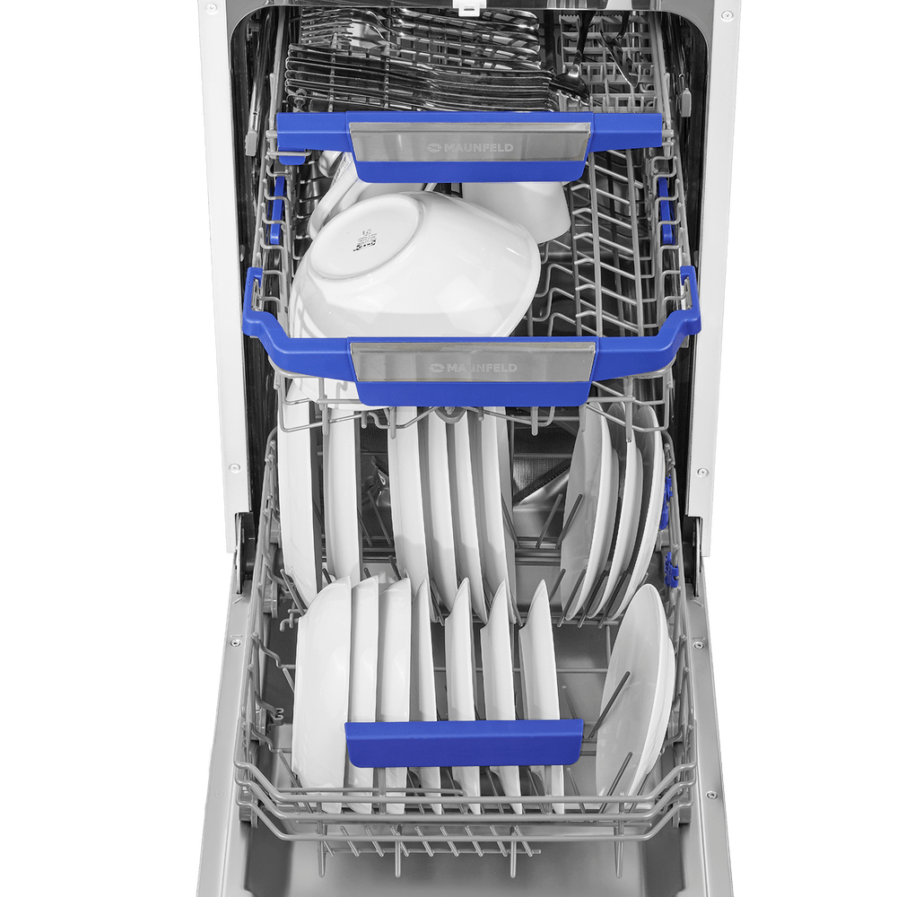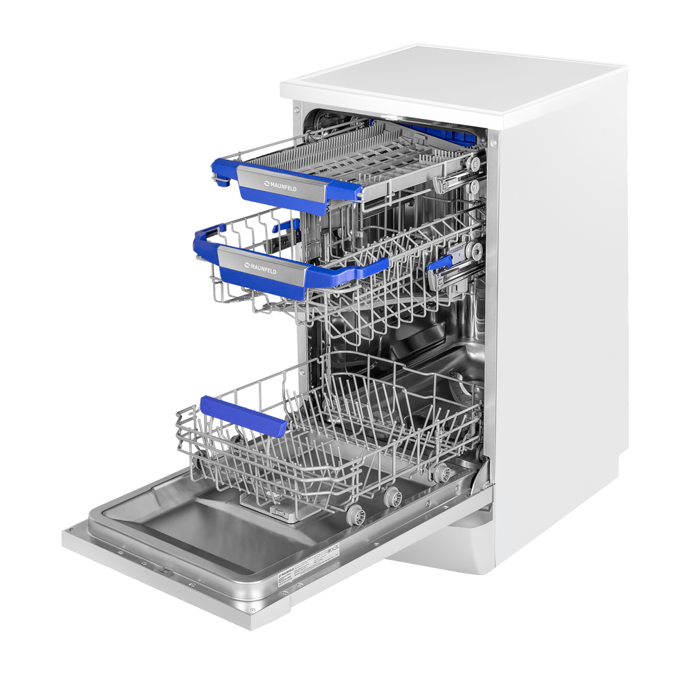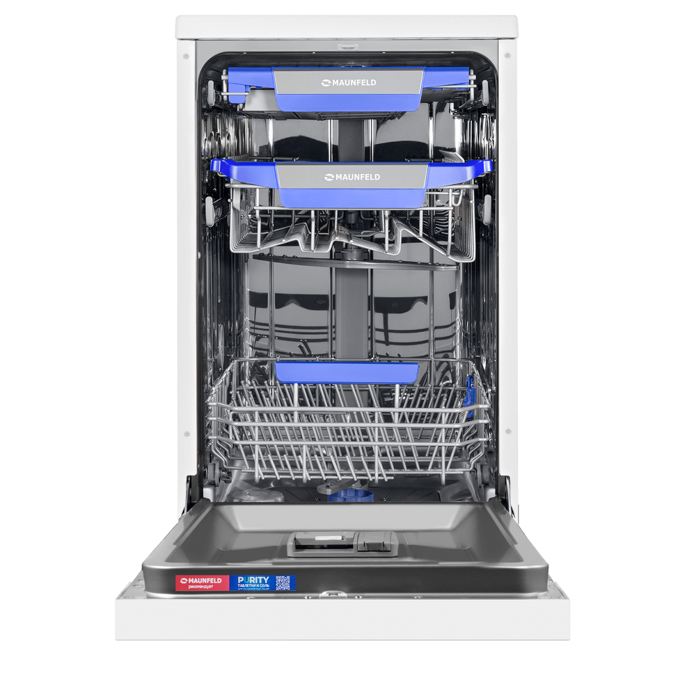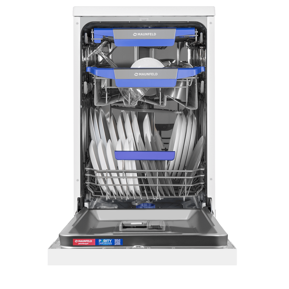 Посудомоечная машина MAUNFELD MWF45331S Inverter с автооткрыванием дверцы. На большом и широком светодиодном дисплее можно с комфортом просматривать всю информацию о посудомоечной машине.