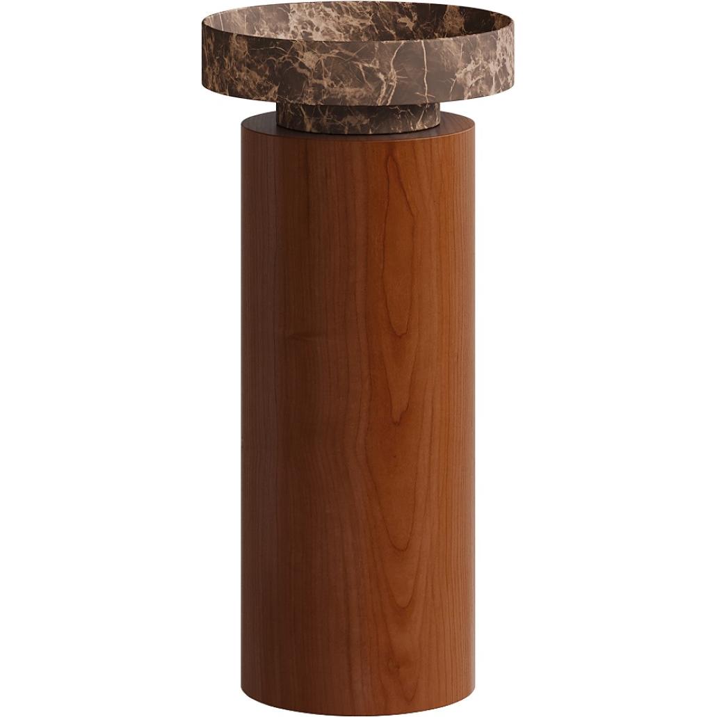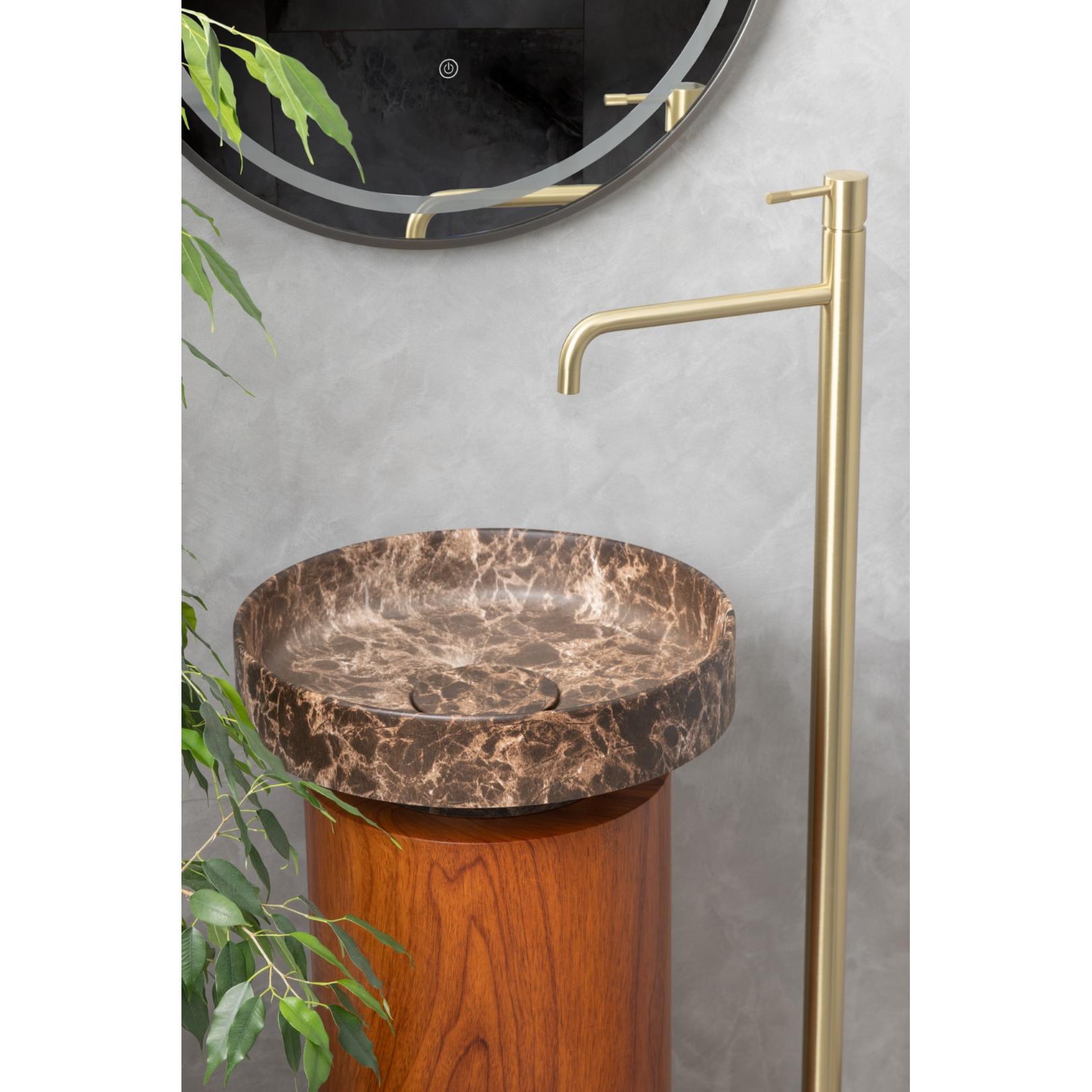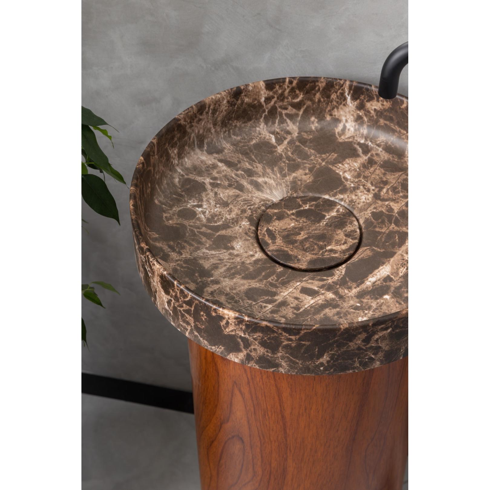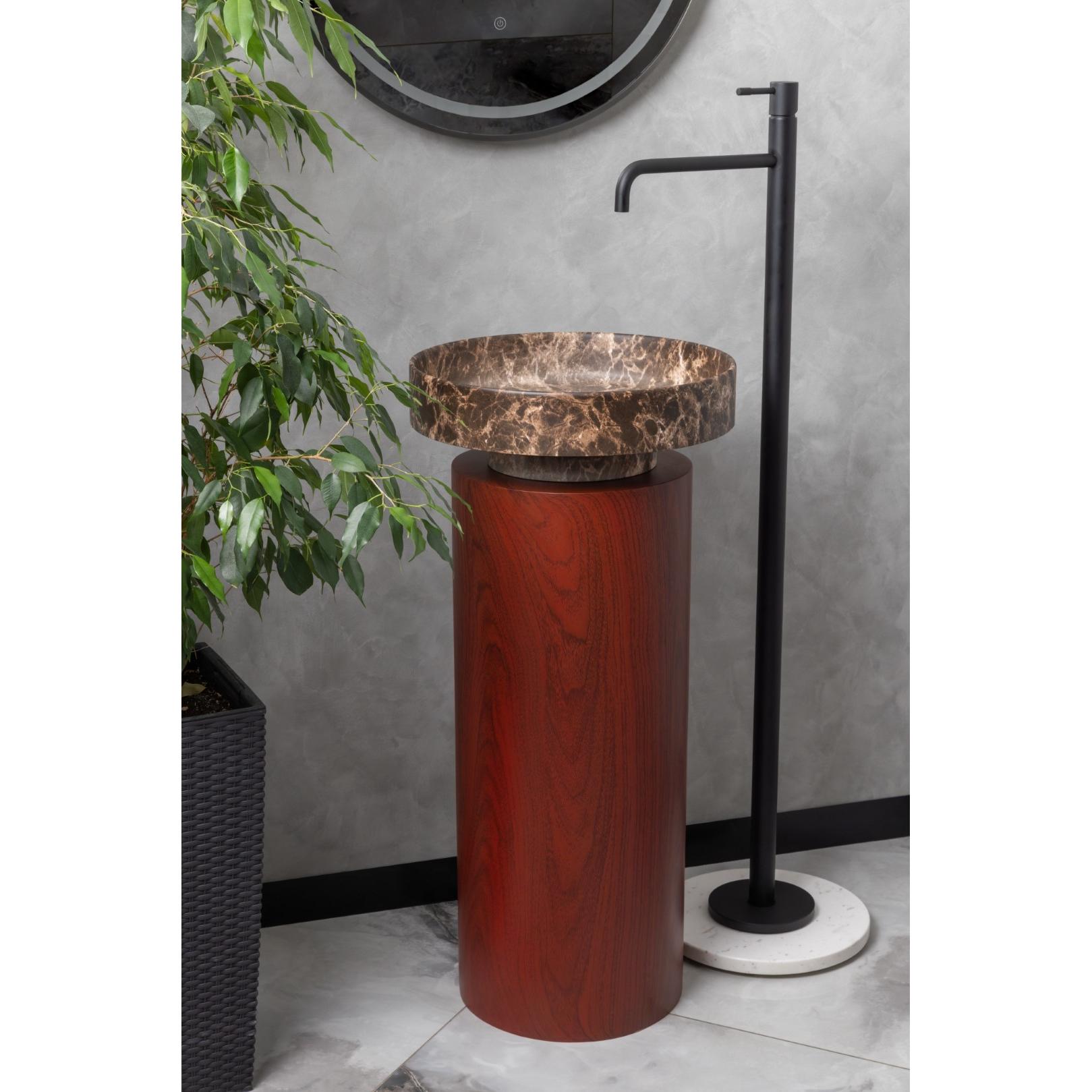 Раковина накладная Boheme Sole Corian 400*130 Emprador с пьедесталом Corian 300*720 Red Wood