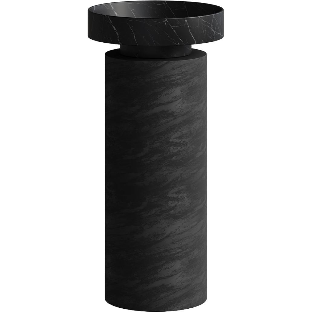 Раковина накладная Boheme Sole Corian 400*130 Nero Marquina с пьедесталом Corian 300*720 Black Wood