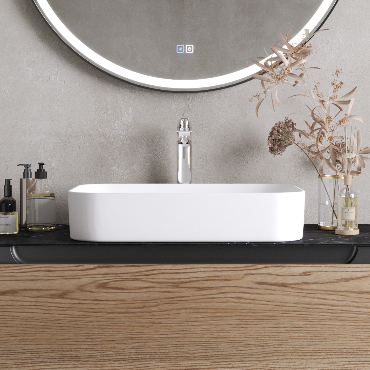 Раковина керамическая, накладная, без отверстия перелива.