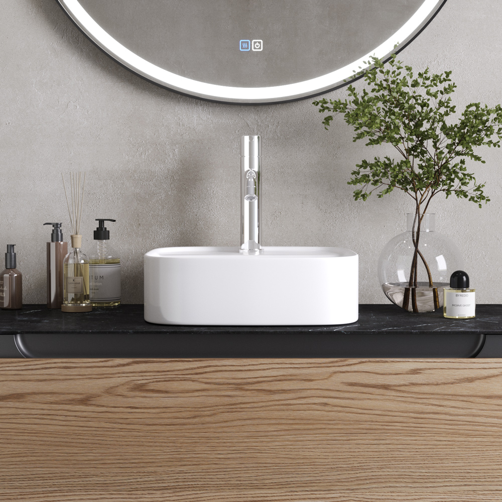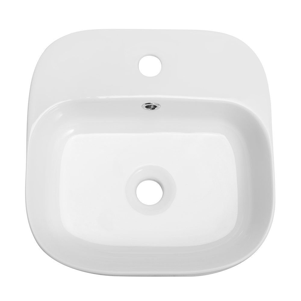 Раковина керамическая, накладная, с отверстием перелива.